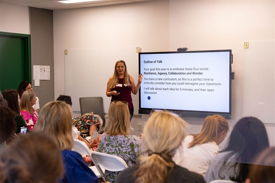 Candace Walkington, an Annette and Harold Simmons Centennial Chair, Professor, in the Department of Teaching and Learning at Southern Methodist University, presented to our Lower School faculty about teaching Hockaday's new math curriculum, and data around the four outcomes in Lower School: wonder, agency, collaboration, and resilience!